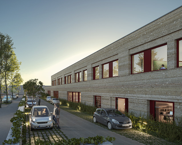 Les nouveaux volumes s’intègrent dans une logique de « clos », inspirée de la cité-jardin, avec des limites clairement construites et des altimétries progressives qui favorisent l’ensoleillement et la qualité des espaces partagés. Deux diagonales structurent la composition : l’une dédiée aux accès publics, l’autre à la présence du projet dans la ville. Les matériaux choisis, principalement un béton décliné en plusieurs textures et teinté dans la masse, rappellent le travail de la pierre de l’existant et assurent une cohérence architecturale contemporaine. Les façades largement percées et les dispositifs de claustras assurent lumière naturelle, ventilation et confort thermique.